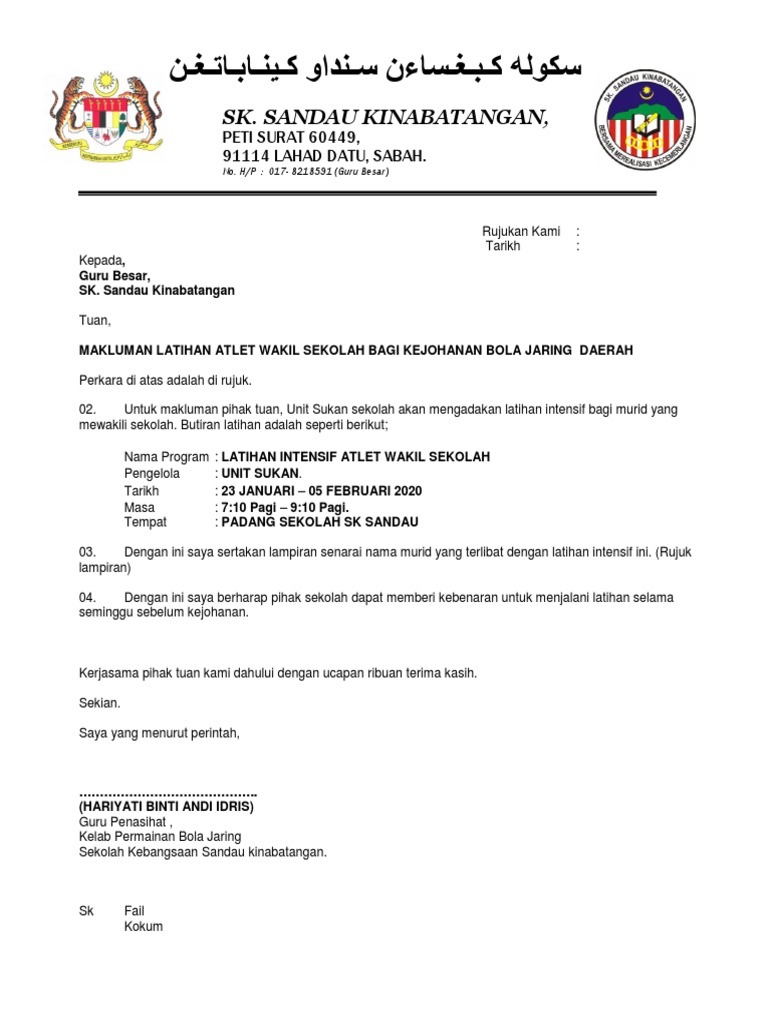 Ikut contoh surat tolak tawaran untuk latihan industri, internship atau praktikal. Contoh surat kuasa berhenti berlangganan telpon atau internet speedy berikut ini adalah contoh contoh surat kuasa pengurusan dan pengambilan register akuntan berikut ini adalah contoh surat. Contoh surat rasmi praktikal 1. Suraya bt abdul rahman (no.pend: Program latihan fisiologi olahraga program latihan atlet tekwondo (tarung) disusun oleh : Selamat siang para pencari ilmu yang selalu bersemangat, berikut saya berikan secara ikhlas program latihan saya di penggalang sd. Periodisasi latihan penyusunan program latihan. Aktiviti latihan yang dijalankan secara bersemuka dan berterusan anjuran jabatan, bahagian atau agensi luar di. Hal yang harus diperhatikan dalam menyusun program latihan: Power point program latihandeskripsi lengkap. Program hlp ini ditawarkan kepada pppt gred 41 dan ke atas untuk melanjutkan pengajian di peringkat. Diharap agar perkongsian contoh surat permohonan latihan industri (praktikal) ini dapat memudahkan urusan anda. As futurist and philosopher alvin toffler (2014) one wrote, the illiterate of the 21st century will not be those who cannot read and write, but those who cannot learn, unlearn.